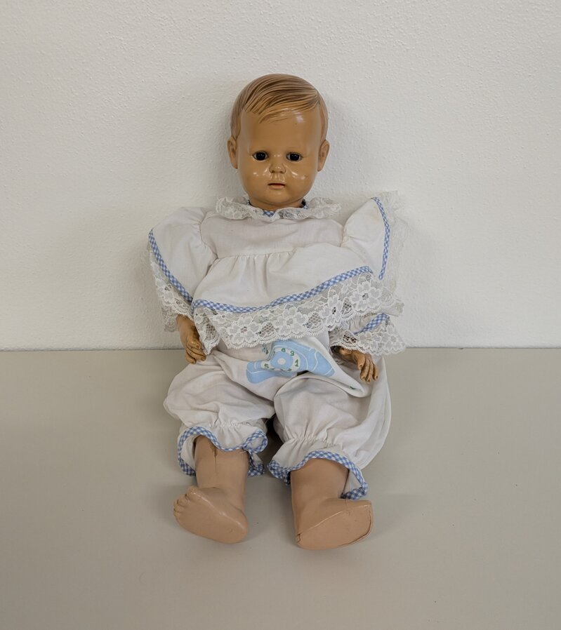 Condizioni: Buone, elastici interni allentati, suono non funzionante, braccia restaurate, il braccio destro presenta un foro, leggera crepa al piede destro