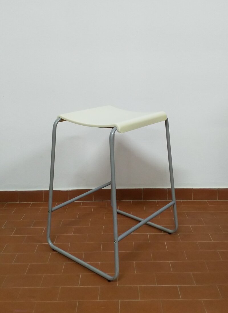 Sgabello con struttura in acciaio laccato grigio chiaro