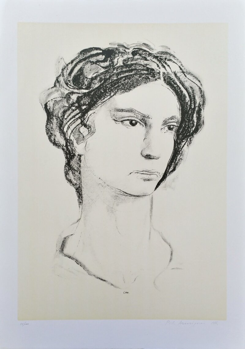 Al verso del foglio timbro recante: "Litografia originale eseguita dal maestro Pietro Annigoni in occasione del decennale delle Edizioni Aprile Ronda. Tiratura totale 1000 copie suddivise in 10 varianti numerate a 100 copie cadauna. Ogni opera è firmata e numerata dall'autore."