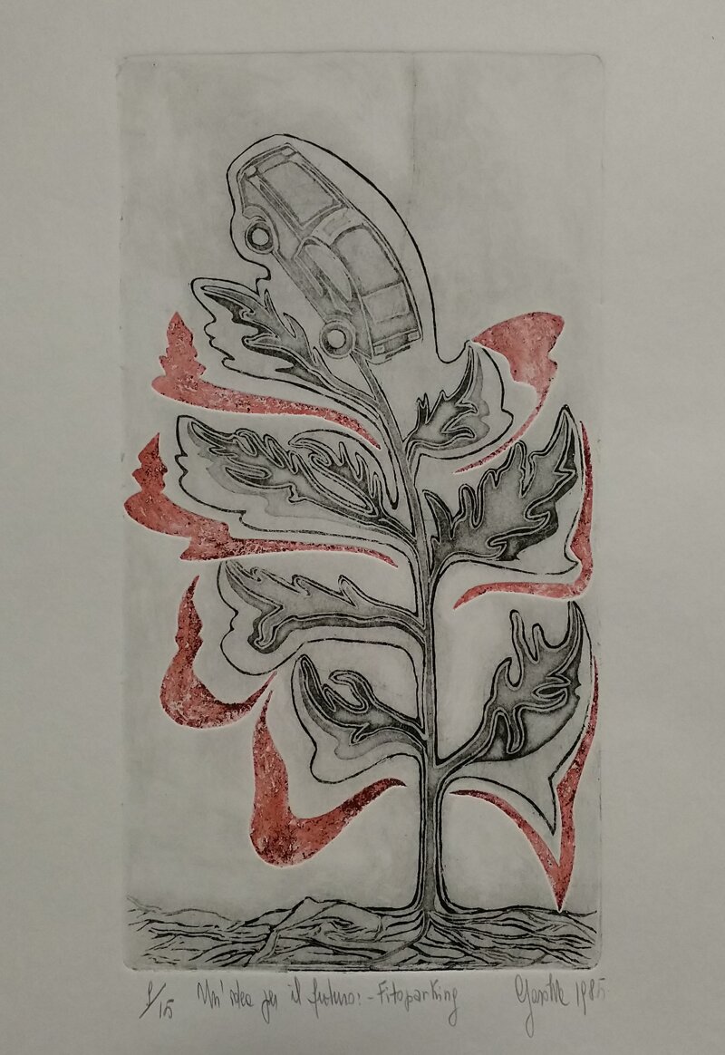 Sul retro: "Incisione originale stampata dall'artista con torchio a mano nell'anno 1985 - Acquatinta"