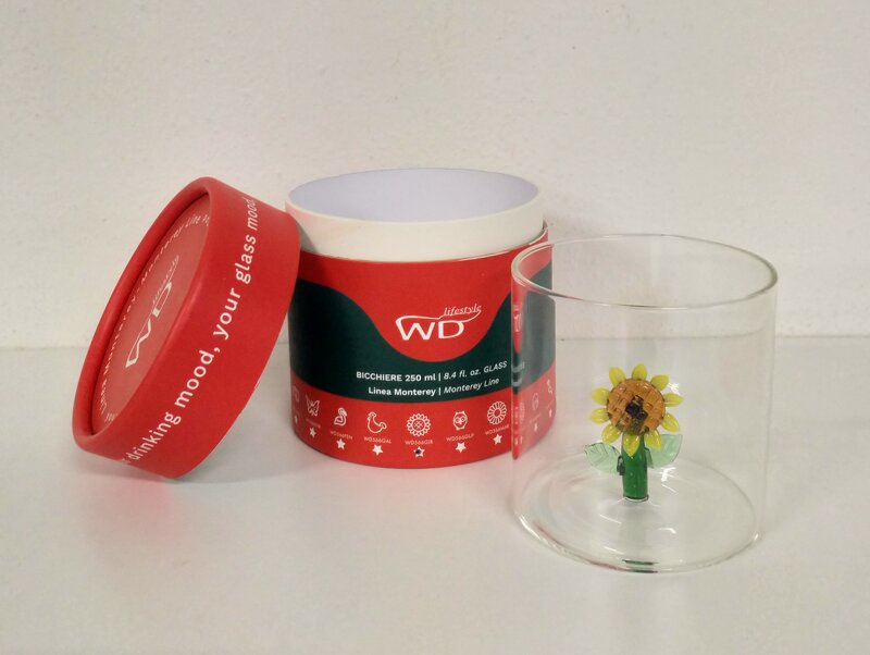 WD Lifestyle, Bicchiere con Girasole, vetro borosilicato, etro soffiato
